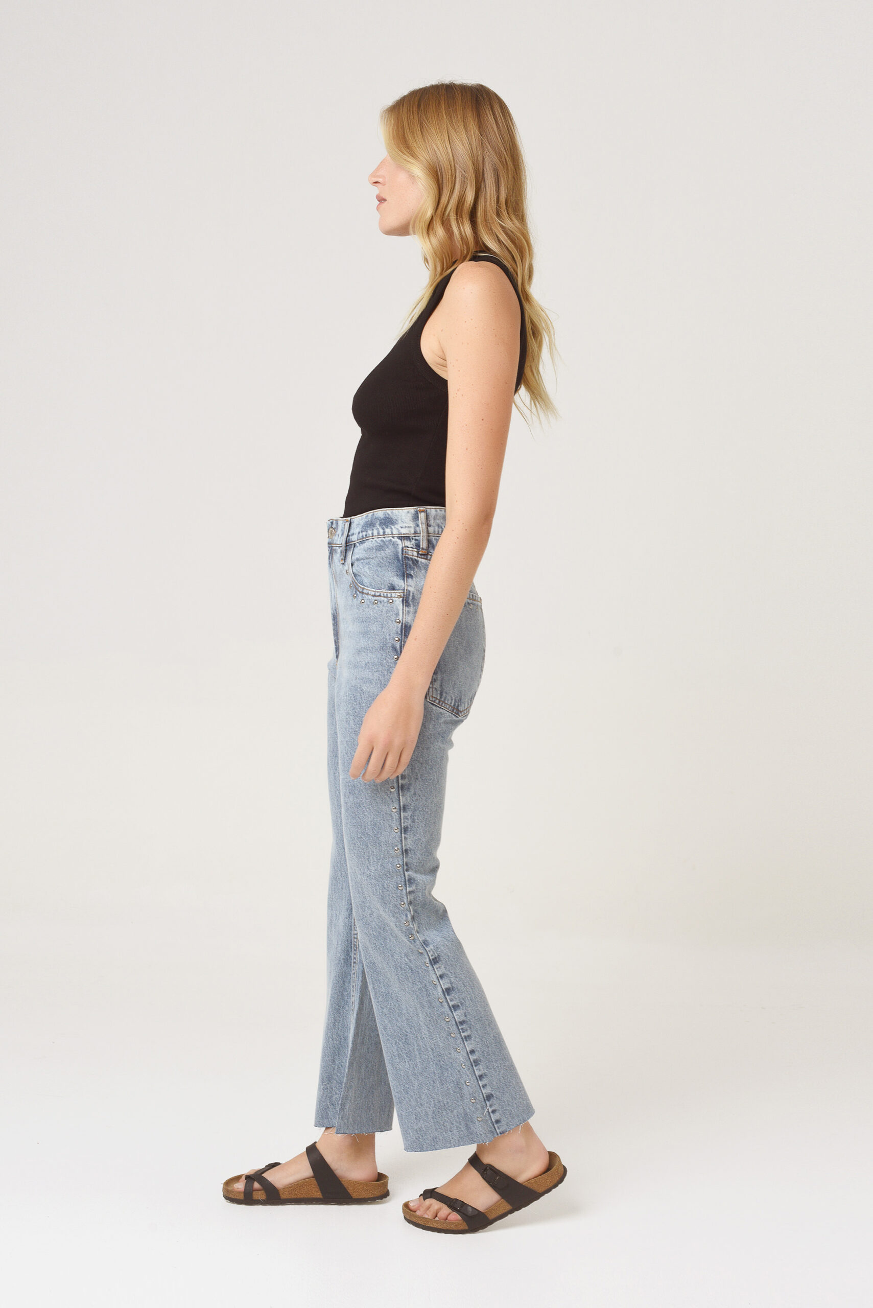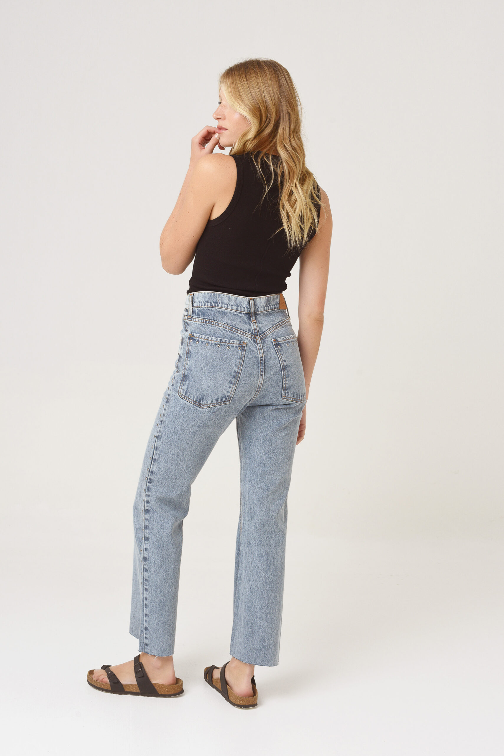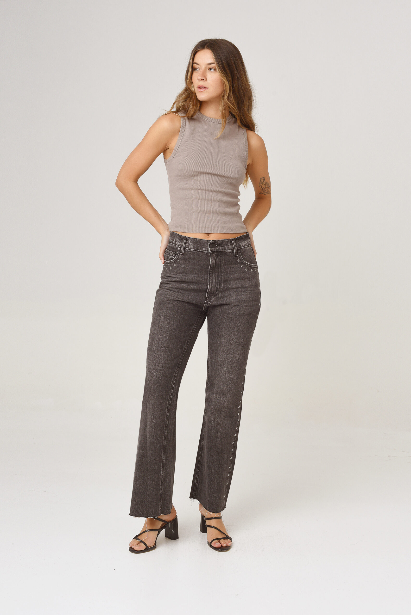 Tiro alto, ajuste en cintura, cadera y muslos.