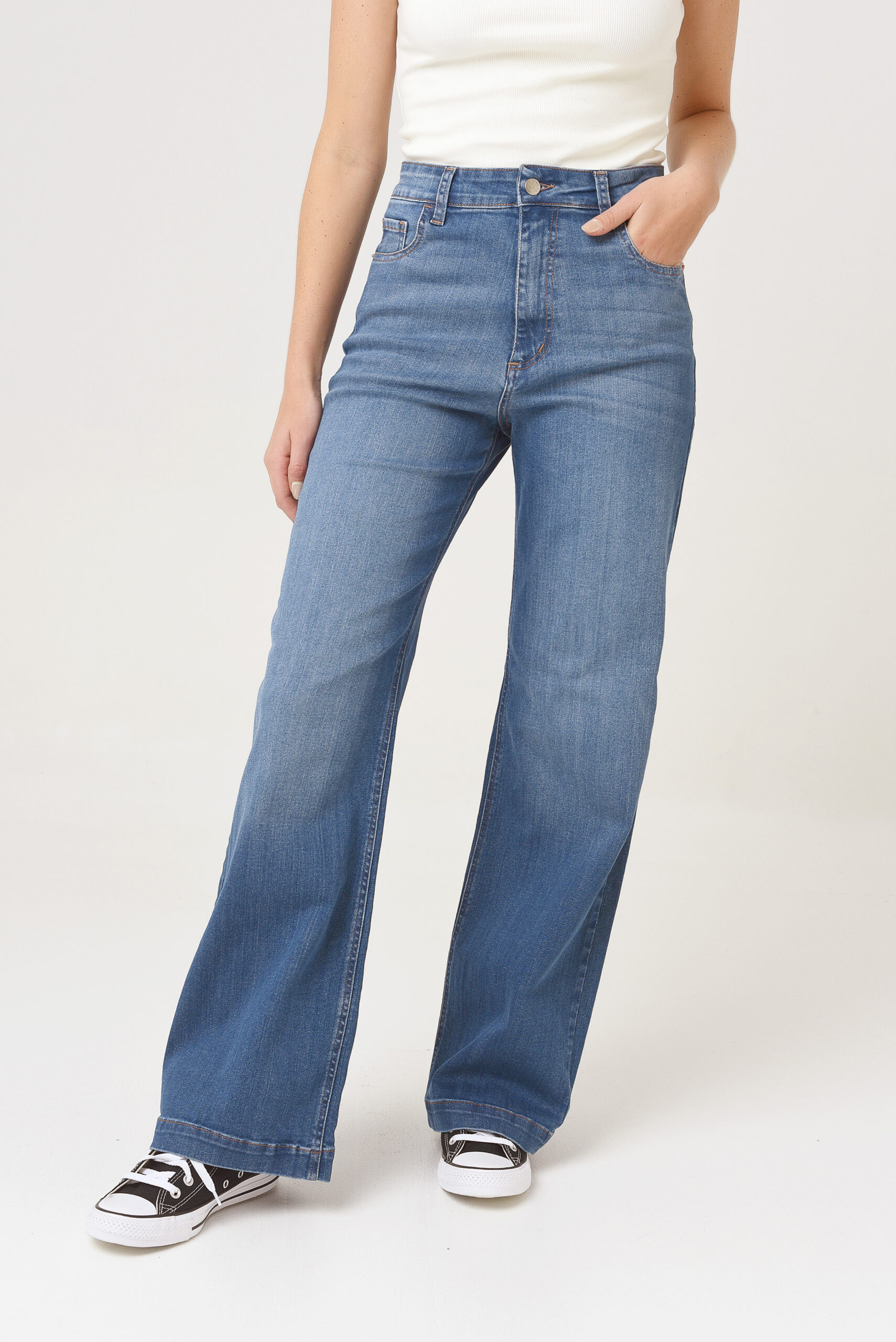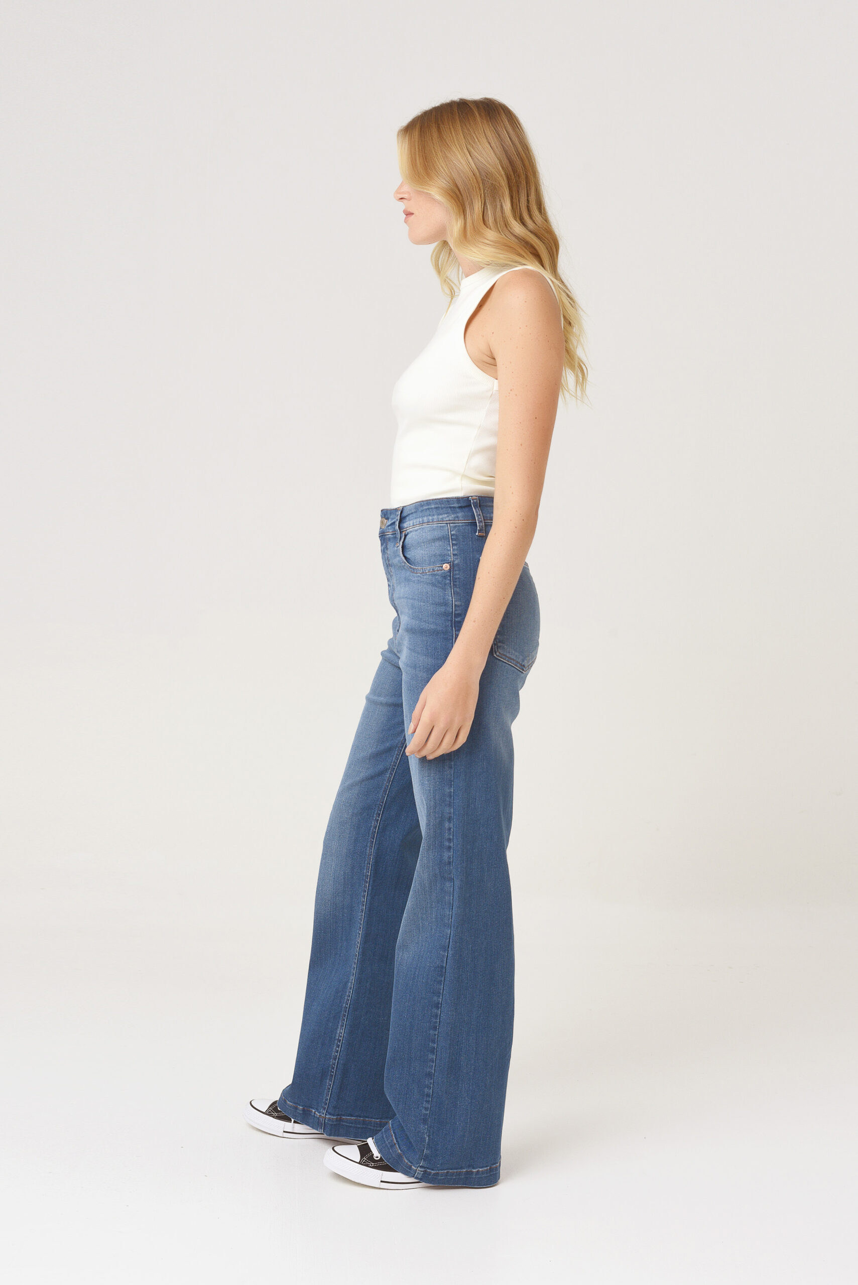 DARIA, tiene 5 bolsillos, tiro alto, y su calce es al cuerpo.
