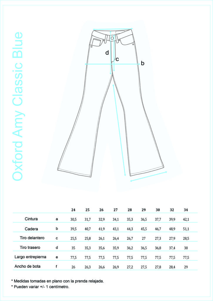 AMY CLASSIC BLUE tiene 5 bolsillos, tiro alto, y ajusta en cintura, cadera y muslos.