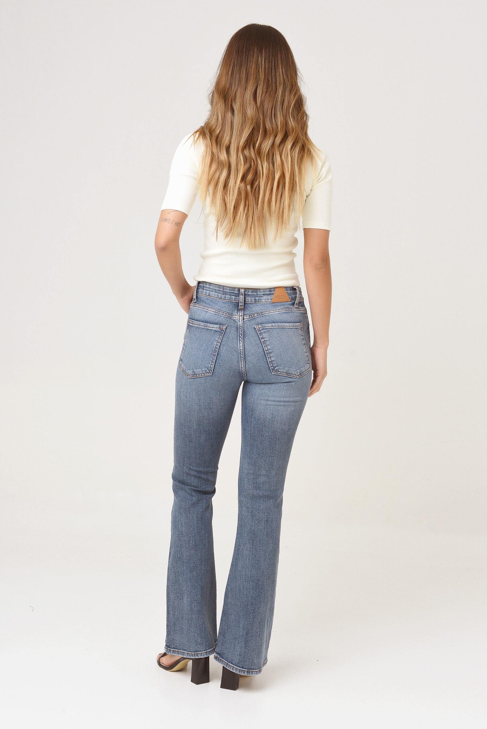 AMY L. BLUE tiene 5 bolsillos, tiro alto, y ajusta en cintura, cadera y muslos.