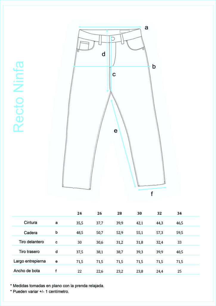 NINFA es un pantalón recto de tiro alto ajustado en cintura y levemente en cadera.