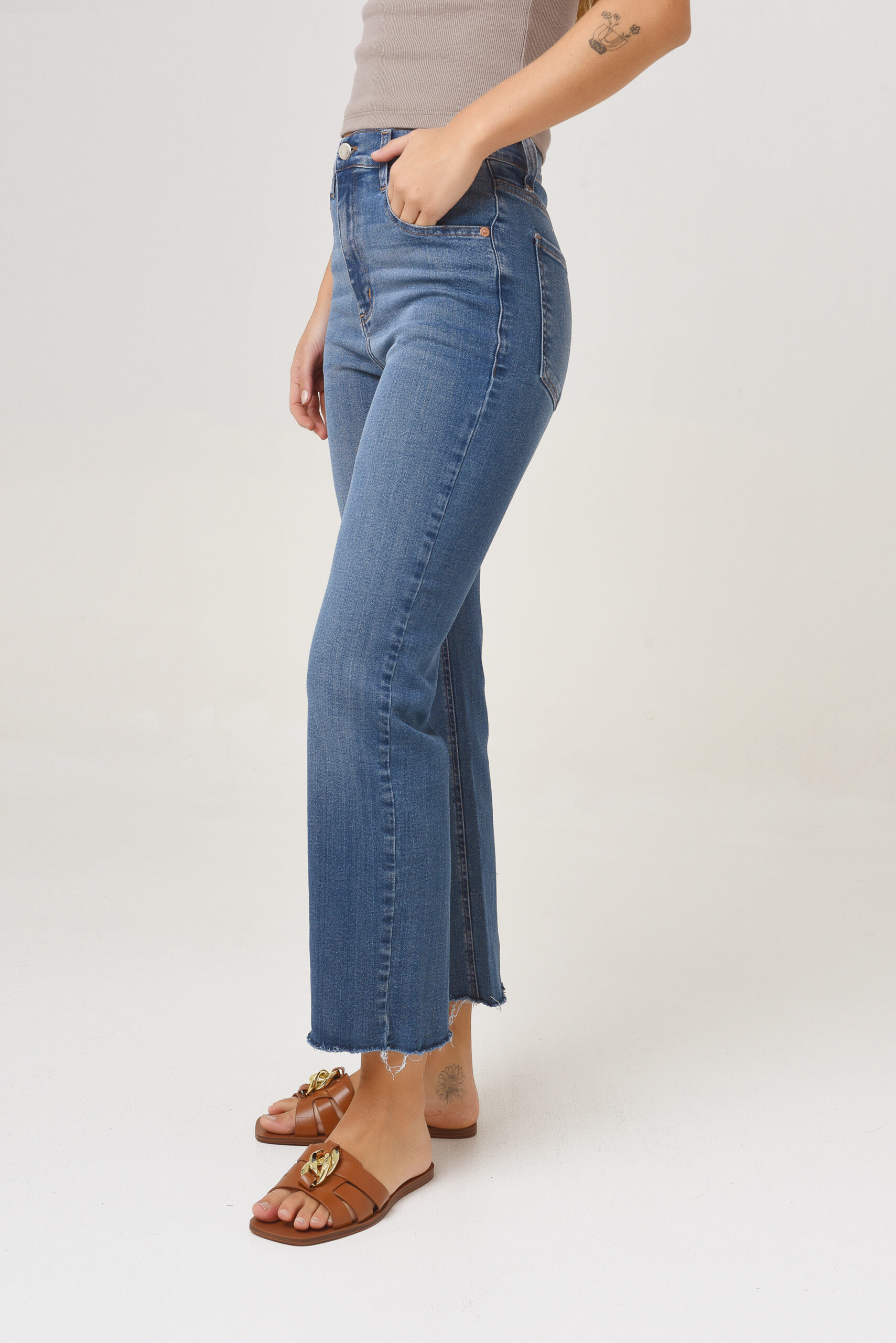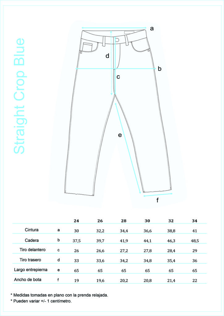 STRAIGHT CROP BLUE, es un jean 5 bolsillos, de tiro alto, ajustado en cintura y levemente en cadera.